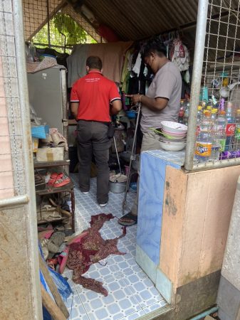 โดยเจ้าหน้าที่กู้ภัยอริโยสามัคคีนาทวีเข้าตรวจสอบและพบว่าเป็นงูเห่าที่เลื้อยเข้าไปซุกซ่อนในห้องครัว จึงนำอุปกรณ์ในการจับงูเข้าจับโดยใช้เวลาไม่นานก็สามารถจับงูเห่าไว้ได้ ขณะนำออกจากห้องครัวออกมา งูเห่า ก็แผ่แม่เบี้ยชูคอสู้อยู่ตลอดเวลา แต่ก็จนสุดท้ายก็ถูกจับใส่กระสอบปุ๋ย เพื่อนำไปปล่อยคืนสู่ป่าธรรมชาติที่อยู่ห่างไกลบ้านเรือนผู้คนต่อไป ซึ่งงูเห่าตัวนี้นำมาวัดได้ความยาว 1.50 เมตร มีน้ำหนักประมาณ 2 กก.
