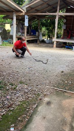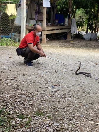 ที่ อ.นาทวี จ.สงขลา นายศุภชัย กีรติมากุล เจ้าหน้าที่หน่วยกู้ภัยอริโยสามัคคีนาทวี กำลังเข้าทำการจับงูเห่าที่เลื้อยเข้าไปในห้องครัวของบ้านเลขที่ 55 ม.1 ต.สะท้อน อ.นาทวี จ.สงขลา หลังได้รับแจ้งจากนายกระจาย จันทร์ทะเสน จึงพร้อมด้วย นางสาวเสาวลักษณ์ ทักคำแหง ,นางสาวอธิตา ไชยมงคล และนายเอ มุกเนียม นำอุปกรณ์ในการจับงูเข้าตรวจสอบที่ห้องครัวของบ้านเลขที่ดังกล่าว