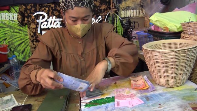โดยร้านค้าที่รับเงินต่างประเทศ ตอนนี้จะเป็นเงินดอลลาร์สิงคโปร์เงินริงกิตมาเลเซียและเงินรูเปียอินโดนีเซีย สำหรับเงินรูเปียอินโดนีเซียรับอยู่ 100,000 รูปีเท่ากับ 200 บาทไทย เวลานักท่องเที่ยวอินโดนีเซียเข้ามาซื้อสินค้า ในส่วนค่าเงินของมาเลเซีย ณ วันนี้ขึ้นไปเป็น 8 บาท แต่ละวันมีความเสี่ยง เพราะค่าเงินขึ้นลงไม่เท่ากัน ก็ต้องมาตกลงกันก่อนอันนี้หมายถึงเงินริงกิตของมาเลเซีย