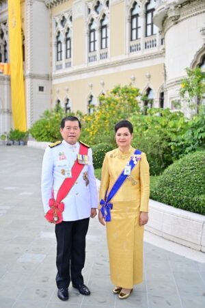 นายนิพนธ์ บุญญามณี พร้อมด้วยนางกัลยา บุญญามณี ภริยา ร่วมงานสโมสรสันนิบาตเฉลิมพระเกียรติพระบาทสมเด็จพระเจ้าอยู่หัว เนื่องในโอกาส เฉลิมพระชนมพรรษา 28 กรกฎาคม 2565 ณ ตึกสันติไมตรี ทำเนียบรัฐบาล