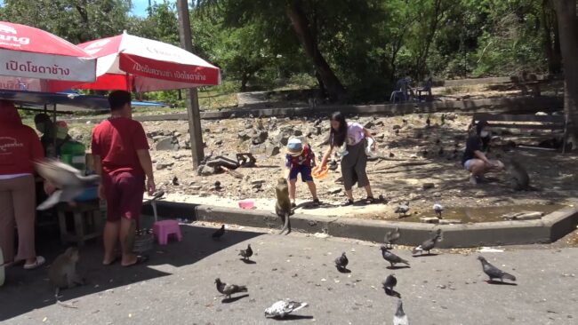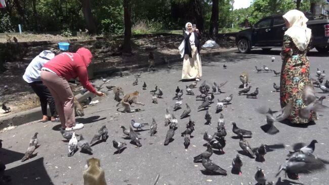สีสัน บริเวณช่องเขาน้อยและเขาตังกวน เขตเทศบาลนครสงขลา ซึ่งเป็นแหล่งท่องเที่ยวที่มีฝูงลิงและฝูงนกพิราบอยู่เป็นจำนวนมาก มีนักท่องเที่ยวและประชาชนผู้รักสัตว์มาซื้ออาหารให้ลิงและนกพิราบกิน เพื่อเป็นการทำบุญแจกทานให้กับสัตว์ถือเป็นการสร้างบุญสร้างกุศลให้กับตนเองและครอบครัว ทำให้ทั้งลิงและนกพิราบต่างอิ่มหนำสำราญกันถ้วนหน้า ทุกวัน รวมทั้งสร้างรายได้ให้กับพ่อค้าแม่ค้าที่มาขายอาหารลิงและนกพิราบบริเวณนี้เช่นเดียวกัน