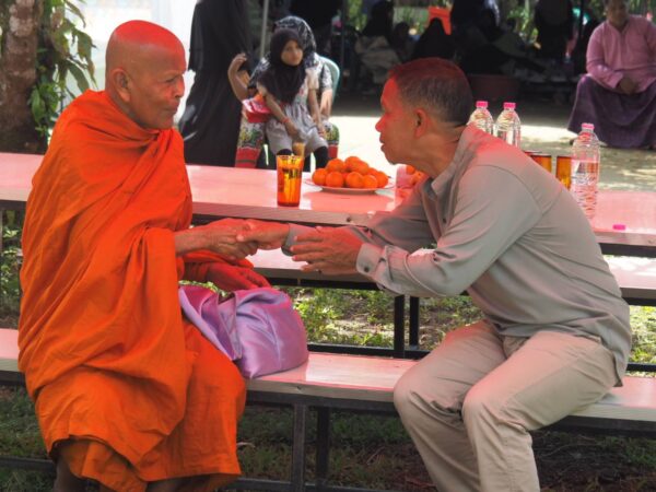 พระเทพศิลวิสุทธิ์ ที่ปรึกษาเจ้าคณะภาค 18 เจ้าอาวาสวัดประชุมชลธารา อำเภอสุไหงปาดี ห่มผ้าเหลือง ร่วมพิธีแต่งงานชาวไทยมุสลิม สะท้อนภาพ การอยู่ร่วมกันอย่าง สันติสุข ภายใต้สังคมพหุวัฒนธรรม
