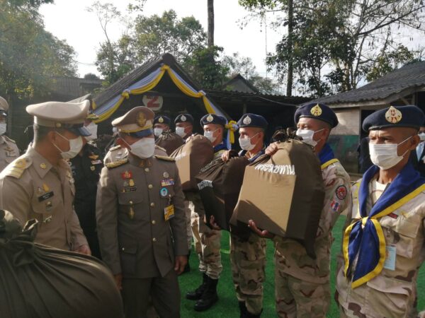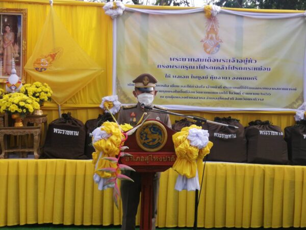 นราธิวาส-พระบาทสมเด็จพระเจ้าอยู่หัว ทรงพระกรุณาโปรดเกล้าฯ ให้องคมนตรี เชิญสิ่งของพระราชทานไปมอบแก่เจ้าหน้าที่ที่ได้รับผลกระทบจากสถานการณ์ความไม่สงบ ในพื้นที่อำเภอสุไหงปาดี อำเภอระแงะ อำเภอรือเสาะ และอำเภอศรีสาคร