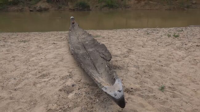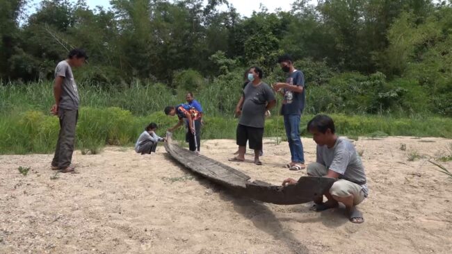 หนุ่มหาปลาพบเรือโบราณอายุนับร้อยปีทำด้วยไม้ตะเคียนแห่ตีเลขเด็ด