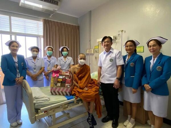 นครปฐม-คณะแพทย์ฯ เข้าเยี่ยม “พระสมคิด” ผู้สื่อข่าว จังหวัดนครปฐม คณะแพทย์โรงพยาบาลนครปฐม และโรงพยาบาลกำแพงแสน นำเช้ากระเช้าเยี่ยมพระสมคิด สุจิตโต ผู้สื่อข่าว จ.นครปฐม