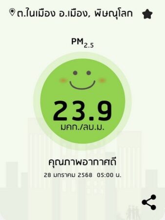 พิษณุโลก ประชาชนโล่งจมูกค่า PM 2.5 เมืองพิษณุโลกเริ่มลดลง