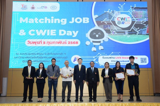 เมื่อวันพุธที่ 5 กุมภาพันธ์ 2568 รองศาสตราจารย์ ดร.ประมุข อุณหเลขกะ อธิการบดีมหาวิทยาลัยเทคโนโลยีราชมงคลสุวรรณภูมิ มอบหมายให้ผู้ช่วยศาสตราจารย์ ดร.สุวุฒิ ตุ้มทอง รองอธิการบดี เป็นประธานเปิดโครงการ Matching JOB & CWIE Day ณ หอประชุมพระพิรุณ – ระลึกโปรดเกล้า ฯ ศูนย์พระนครศรีอยุธยา เพื่อส่งเสริมการศึกษาเชิงบูรณาการและเชื่อมโยงนักศึกษาสู่ตลาดแรงงานผ่านสหกิจศึกษา (Cooperative and Work Integrated Education: CWIE)