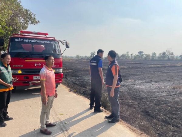 พิจิตร-นายอำเภอวชิรบารมี เมืองชาละวัน ลงพื้นที่ ตามหาตัว มือเพลิง เผานาข้าว ส่งผลเกิด PM 2.5