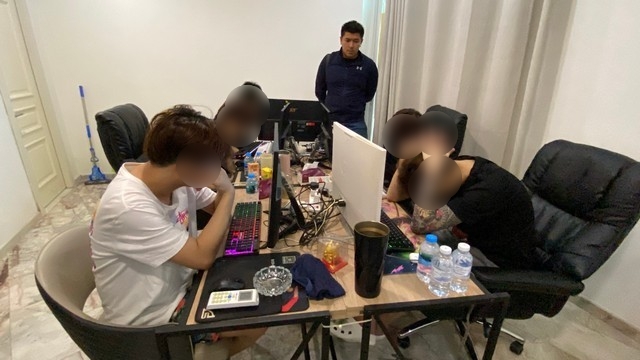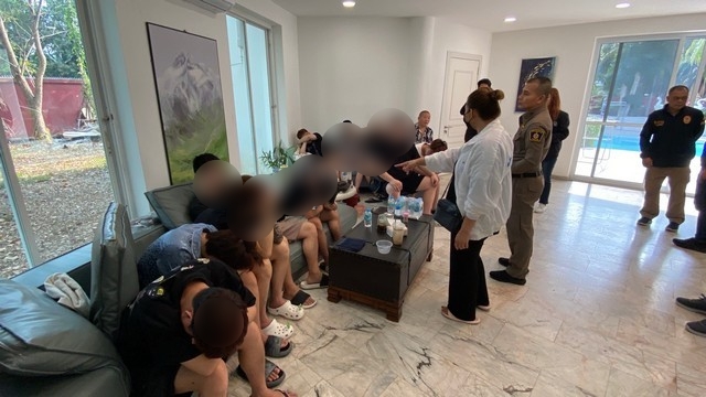 ที่เกิดเหตุเป็นบ้านพูลวิลล่าหรู เนื้อที่กว่า 1 ไร่ ภายในแบ่งเป็นอาคารหลังใหญ่ ขนาด 2 ชั้น 1 หลัง และหลังเล็กอีก 2 หลัง เจ้าหน้าที่ได้ควบคุมตัวผู้ต้องหาชาวจีน จำนวน 12 ราย เป็นชาย 11 ราย และหญิง 1 ราย พร้อมตรวจยึดของกลาง คอมพิวเตอร์ 10 เครื่อง โทรศัพท์มือถือ 61 เครื่อง หนังสือเดินทาง(พาสสปอร์ต) บัตรอิเลคทรอนิกส์ (บัตรกดเงิน) และเงินสดจำนวนหนึ่ง