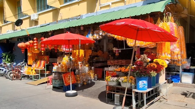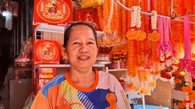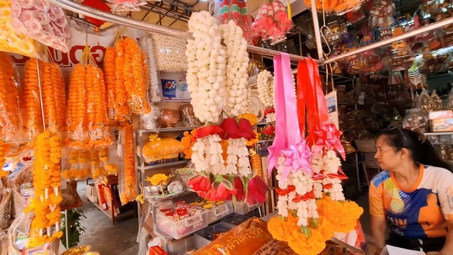 แต่จะซื้อดอกไม้หลากหลายชนิด ทั้งดอกกล้วยไม้ ดอกดาวเรือง ดอกเบญจมาศ ซึ่งทางร้านทำเป็นช่อๆ ละ 10-20 บาท แล้วแต่ชนิดของดอกไม้ อย่างเช่น ดอกดาวเรือง 2 ดอกช่อละ 10 บาท หาก 4 ดอก ช่อละ 20 บาท ส่วนดอกบัวดอกละ 10 บาท สำหรับดอกเบญจมาศดอกใหญ่ ดอกละ 20 บาท ดอกเล็ก 10 บาท ดอกกล้วยไม้ ช่อละ 20 บาท ทำให้ราคาดอกบัว และดอกไม้ยังราคาปกติ
