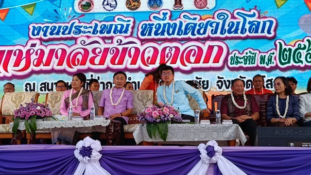 วันที่ 7 กุมภาพันธ์ 2568 เวลา 19.00 น. นายชาญชัย ศรศรีวิชัย ผู้ว่าราชการจังหวัดยโสธร เป็นประธานเปิดงานประเพณีแห่มาลัยข้าวตอก หนึ่งเดียวในโลก ประจำปี 2568
