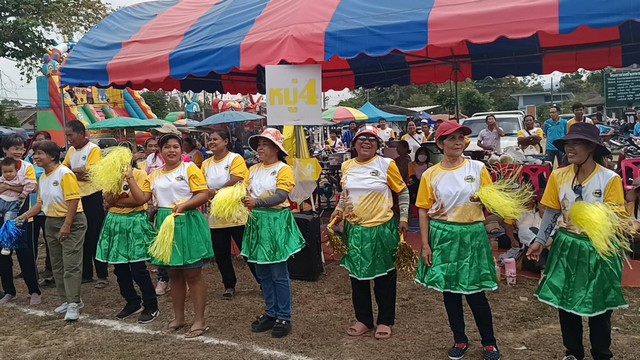 สนุก มันส์ ฮา กับกาแข่งขัน “วิ่งผลัดกระสอบ” ชายไม่กำจัดอายุ ตัวแทน 8 หมู่บ้านๆละ 5 คน ระยะ 40 เมตร ทันทีกรรมการเป่านกหวีด นักกีฬาแต่ละคนต่างใช้เทคนิคของตัวเอง มีทั้งวิ่งมีทั้งกระโดด แม้จะล้มระหว่างการแข่งขันก็ลุกขึ้นมาวิ่งต่อได้ แต่ที่สุดของการวิ่งกระสอบต้องยกให้ ทีมหมู่ 4 สีเหลือง พลิกสถานการณ์ แซงคู่แข่ง พาทีมชนะที่ 1, ปิดท้ายด้วยการแข่งขัน ย้อนวัยตีลูกล้อ สะท้อนวิถีชีวิตความเป็นไทย นำวงล้อจากยางรถจักรยานยนต์ที่ ไม่ใช่ แล้ว และไม้ตีที่ทำจากไม้ไผ่ ทีมละ 5 คนเป็นการตีวงล้อผลัดระยะ 40 เมตร ทันทีเสียงนกหวัดดัง นักกีฬาอาศัยทักษะ ความมีสมาธิและความรวดเร็ว ใช้ไม่ตีหรือผลักวงล้อให้หมุนไปข้างหน้า บางคนวงวิ่งเลย วิ่งออกนอกลู่ ทีม ไหนตีครบ 5 คนและเข้าถึงเส้นชัยก่อนชนะ เป็นการแข่งขันที่สนุกสนาน โดยทีมชนะ 1-3 รับรางวัลเป็นตู้เย็นเคลื่อนที่ขนาดใหญ่