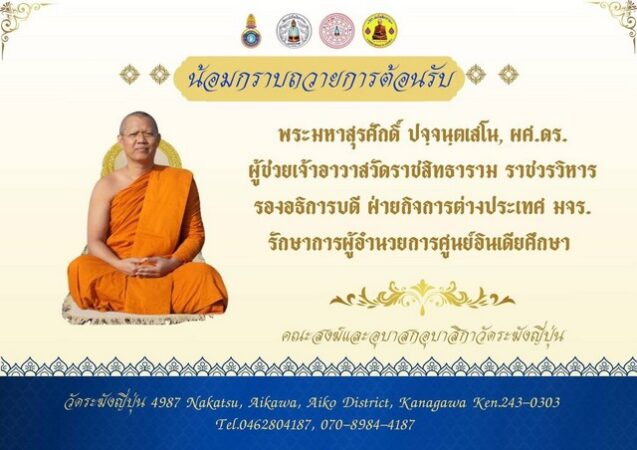 ในโอกาสนี้ ขอขอบคุณ พระครูโฆสาภิวัฒน์ เจ้าอาวาสวัดระฆังญี่ปุ่น และพระครูพิพิธวรกิจจาทร รองเจ้าอาวาสวัดระฆังญี่ปุ่น พร้อมด้วยคณะสงฆ์และคณะกรรมการบริหารวัดระฆังญี่ปุ่น ที่ให้การสนับสนุนโครงการอบรมพระธรรมทูตสายต่างประเทศของ มจร
