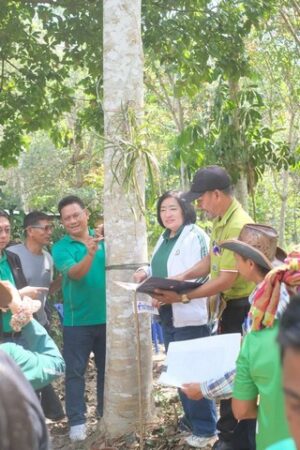 วันที่ 10 กุมภาพันธ์ 2567 เวลา 11.00 น.ที่ชุมชนธนาคารต้นไม้ บ้านพรุดินนา เลขที่ 24 หมู่ที่ 6 และ เลขที่ 83 ม.6 ต.พรุดินนา อ.คลองท่อม จังหวัดกระบี่ ของนายเดชา ศรีชัย ประธานวิสาหกิจ ธนาคารต้นไม้ บ้านพรุดินนา ได้มีการรวมตัวของสมาชิกของชุมชนธนาคารต้นไม้และชุมชนไม้มีค่าในจังหวัดกระบี่ 3 ชุมชน ประกอบด้วย ธนาคารต้นไม้บ้านพรุดินนา บ้านปลายทับใหม่ และบ้านคลองพน จังหวัดกระบี่ โดยในวันนี้ ธ.ก.ส. ได้ลงพื้นที่เพื่อผนึกกำลังชุมชนธนาคารต้นไม้และชุมชนไม้มีค่าในจังหวัดกระบี่ 3 ชุมชน ในการขับเคลื่อนภารกิจซื้อ – ขายคาร์บอนเครดิตในโครงการ BAAC Carbon Credit พร้อมออกใบ Certificate มาตรฐาน T-VER จาก อบก.(องค์การบริหารจัดการก๊าซเรือนกระจกองค์การมหาชน) เพื่อตอบโจทย์ภาคธุรกิจในการบรรลุเป้าหมายการปล่อยก๊าซเรือนกระจกเป็นศูนย์ได้แก่ธนาคารต้นไม้บ้านพรุดินนา บ้านปลายทับใหม่ และบ้านคลองพน จังหวัดกระบี่