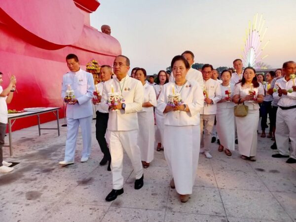 ปทุมธานี “พ่อเมืองปทุมธานี” นำพุทธศาสนิกชนร่วมพิธีเวียนเทียน เนื่องในวันมาฆบูชา ที่วัดโบสถ์ สามโคก
