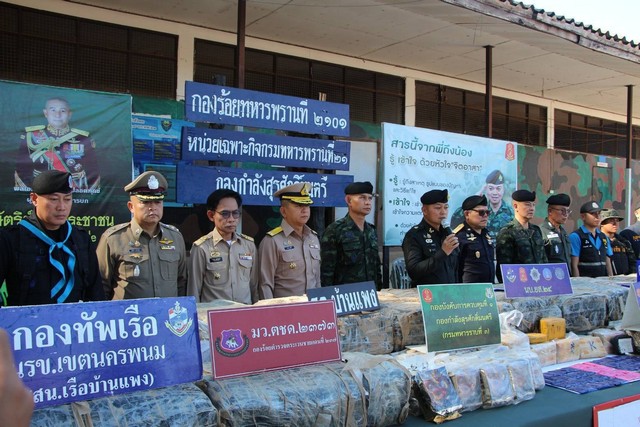 นครพนม-แม่ทัพภาคที่ 2 แถลงข่าวทหารพราน “Seal Stop Safe” สกัดยาเสพติดชายแดน รวบ 3 ผู้หาขนยาไอซ์ 658 กิโลกรัมพร้อมยาบ้ากว่าแสนเม็ด ริมฝั่งแม่น้ำโขงบ้านอำเภอบ้านแพง