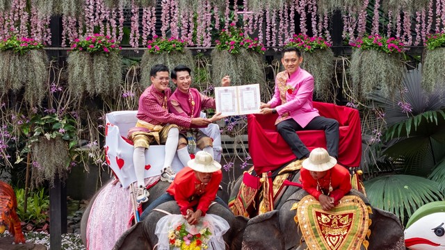 ปีแรก! สวนนงนุชพัทยา จัดจดทะเบียนบนหลังช้าง ฉลองสมรสเท่าเทียม คู่รัก LGBTQ+ แห่ร่วมคึกคัก สร้างความตื่นตาตื่นใจให้กับผู้ที่มาร่วมงาน