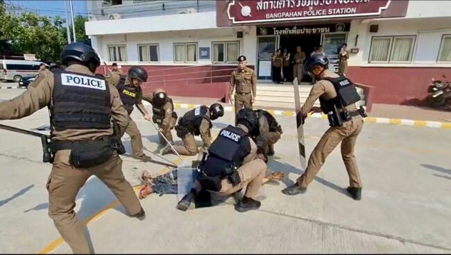 พล.ต.ต.โชคชัย งามวงศ์ รอง ผบช.ภ.1 ตรวจเยี่ยมชมการสาธิตฝึกทบทวนการระงับเหตุบุคคลคลุ้มคลั่งมอบรางวัลเพื่อเป็นขวัญกำลังใจ