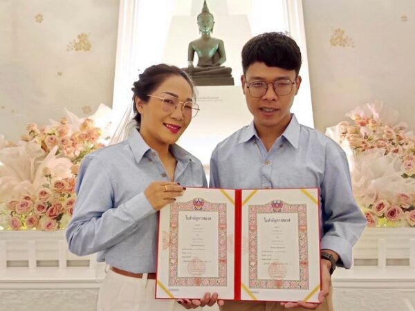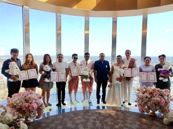 ร้อยเอ็ด…จดทะเบียนสมรสเท่าเทียม ที่หอโหวด 101 landmark จังหวัดร้อยเอ็ด เพื่อความเป็นสิริมงคล “อุ่นไอรัก”โดยมี ผวจ.ร้อยเอ็ด ร่วมเป็นสักขีพยาน