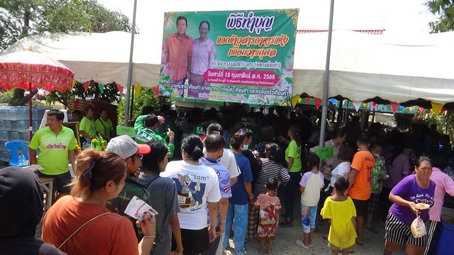 เมื่อเวลา 13.00 น.ของวันนี้(15 กพ.68)ที่บ้านเลขที่ 35 หมู่ 12 ตำบลบางจัก อำเภอวิเศษชัยชาญ จังหวัดอ่างทอง มีประชาชนจาก 3 ตำบล จำนวน 400 ครัวเรือน ต่างเดินทางมารับข้าวสารอาหารแห้ง ที่นายสมชาย เทียนคำ และนางธนากร เทียนคำ พร้อมครอบครัว ได้จัดงานทำบุญครบรอบวันมรณภาพครบ 69 ปี ของพระครูธรรมพิริยคุณ หรือหลวงพ่อเต่า อดีตเจ้าอาวาสวัดน้ำพุ เกจิดังแห่งลุ่มแม่น้ำน้อย