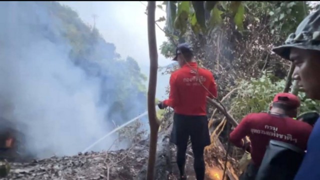 สตูล -กำลังพลเรือ ต.114 เรือ ต.273 และ นรภ.ทร.เกาะหลีเป๊ะ นำเครื่องสูบน้ำเคลื่อนที่ร่วมกันด้บไฟจนสามารถควบคุมไฟไฟไหม้ป่าบนเกาะบุโหลนดอน ต.ปากน้ำ อ.ละงู