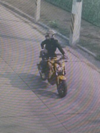 โดยภาพวงจรปิดสามารถจับพฤติกรรมคนร้ายได้โดยคนร้ายขับรถซีบีอาร์ 650 สีเหลืองไม่ติดแผ่นป้ายทะเบียนทำทีมาขอซื้อของที่บริเวณหน้าร้านก่อนลงมือกระชากสร้อยคอทองคำหนัก 1 บาทและหลังจากนั้นได้มีการต่อสู้กันก่อนที่คนร้ายจะขับรถรถจักรยานยนต์หลบหนีลอยนวล