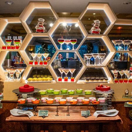นอกจากนี้ยังมุม “ข้าวต้มกุ๊ย” “Carving Station 7 วัน 7 เมนู” ขาหมูสูตรดิเอมเมอรัลด์ ข้าวต้มปลากะพง พาสต้าพรีเมียม ซุปเห็ดทรัฟเฟิล เทมปุระ เทปปันยากิ เครื่องดื่มน้ำอัดลม ชา-กาแฟ ของหวานทั้งไทย เบเกอรี่ ไอศกรีม และผลไม้ตามฤดูกาล รับประกันความคุ้มค่า ในราคาเพียงท่านละ 1,700++ บาท