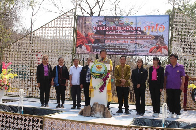 นายธนากร บุญซ้อน นายอำเภอคำม่วง กล่าวว่า กิจกรรมส่งเสริมและพัฒนาภูปอ ซึ่งมีแหล่งไม้กลายเป็นหิน และถ้ำผา ที่สวยงาม เป็นอีกส่วนที่ทางอำเภอคำม่วงได้ร่วมกับภาคเอกชน และองค์กรภาคประชาชน เพื่อพัฒนาและขับเคลื่อนเป็นแหล่งท่องเที่ยว เช็คอินอีกแห่งหนึ่งของอำเภอคำม่วง ที่เชื่อมโยงกับท่องเที่ยวเส้นทางหลักและเส้นทางท่องเที่ยวอุทยานโลกกาฬสินธุ์ จริง ๆ แล้ว อำเภอคำม่วงมีของดีหลายอย่าง ซึ่งจะต้องเปิดประชาสัมพันธ์ให้เป็นที่รู้จักมากขึ้นผ่านกลไลความเข้มแข็งของชุมชนในการขับเคลื่อน สำหรับภูปอ นับว่าเป็นแหล่งท่องเที่ยวน้องใหม่ ที่มีอายุยืนยาวมากถึง 150 ล้านปี พร้อมกับกลุ่มองค์กรอนุรักษ์ป่าชุมชนตำบลนาบอน ที่พร้อมจะเดินหน้าขับเคลื่อนกิจกรรมตลอดทั้งปี ทั้งการเดินป่าเที่ยวชม 2 เส้นทาง ไม่ว่าจะเป็นแหล่งไม้กลายเป็นหิน และถ้ำ ผาต่าง ๆ ที่สวยงาม