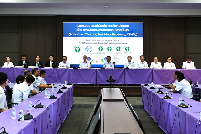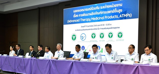 “วันนี้หน่วยงานของกระทรวงสาธารณสุข ยังได้ร่วมกับคณะแพทยศาสตร์ทั้ง 4 สถาบัน ประกาศเจตนารมณ์เพื่อร่วมมือกันทางวิชาการในการพัฒนาผลิตภัณฑ์ ATMPs ซึ่งส่วนใหญ่เป็น “ยา” ที่ออกฤทธิ์เป็นยีน เซลล์ หรือเนื้อเยื่อ ที่ยังอยู่ในขั้นตอนการวิจัยพัฒนาจำนวนมาก เพื่อเพิ่มโอกาสเข้าถึงของผู้ป่วย โดยปี 2568 มีเป้าหมายให้คนไทยและชาวต่างชาติสามารถเข้าถึงยา ATMPs ในไทยที่ได้มาตรฐานอย่างเหมาะสมผ่านกลไกการอนุญาตวิจัยในพื้นที่ทดลอง 5 แห่งในสังกัดกรมการแพทย์ กรมควบคุมโรค สำนักงานปลัดกระทรวงสาธารณสุข และกรมวิทยาศาสตร์การแพทย์ ควบคู่ไปกับการจัดตั้งศูนย์บริการผลิตภัณฑ์ยา ATMPs แบบเบ็ดเสร็จ รวมถึงเพื่อเพิ่มความสามารถในการแข่งขันของประเทศ” นายสมศักดิ์กล่าว