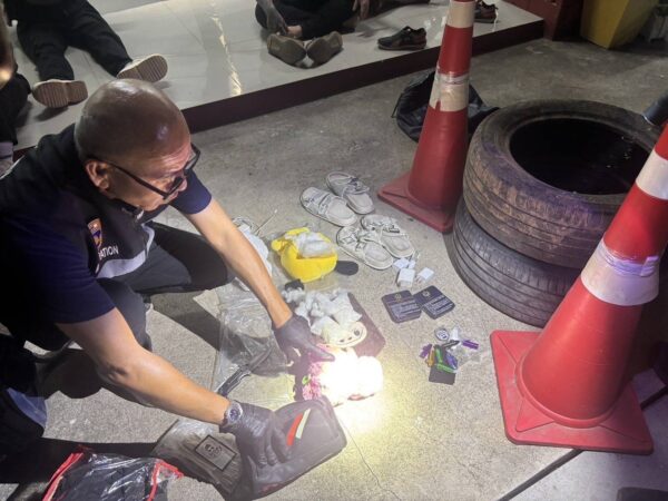 ที่นำเข้ามาจากต่างประเทศ สีเขียว จำนวน 1 ลูก 2. เคตามีน น้ำหนัก 1,053.5 กรัม 3. ยาไอซ์ น้ำหนัก 0.5 กรัม 4. HAPPY WATER (ยาเสพติดมีส่วนผสมเมทแอมเฟตามีน) จำนวน 7 ถุง และ 5. ยาบ้า จำนวน 22 เม็ด ซุกซ่อนอยู่ในกระเป๋าของผู้ต้องหา และบางส่วนถูกยัดมาในตุ๊กตาผ้า เจ้าหน้าที่ตำรวจจึงได้แจ้งข้อกล่าวหา “ร่วมกันครอบครองยาเสพติดฯ ,ร่วมกันมีวัตถุระเบิดไว้ในครอบครอง และให้การซ้อนเร้น ช่วยเหลือด้วยประการใดๆแก่คนต่างด้าวฯ” นอกจากนี้ยังพบเหยื่อคนต่างด้าวที่เชื่อว่าน่าจะถูกหลอกลวงไปทำงานคอลเซ็นเตอร์ที่ประเทศเมียนมา จำนวน 2 คน คือ นางสาว Valenzuela Erica อายุ 25 ปี สัญชาติฟิลิปปินส์ และ นางสาว De Guzman Rosalee อายุ 27 ปี สัญชาติ ฟิลิปปินส์ ทั้งคู่เดินทางเข้ามาในประเทศตั้งแต่วันที่ 21 ก.ค.66 จึงได้ประสานเจ้าหน้าที่สำนักงานพัฒนาสังคมและความมั่นคงของมนุษย์ จ.สิงห์บุรี ทำการคัดแยกว่าจะเป็นผู้เสียหายจากการค้ามนุษย์หรือไม่ เพื่อจะได้ดำเนินการต่อไป