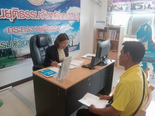 วันที่ 21 กุมภาพันธ์ 2568 ที่ว่าการอำเภอเมืองกาฬสินธุ์ จ.กาฬสินธุ์ นายเลิง บุญมา อายุ 54 ปี ชาวบ้านโนนตูม หมู่ 4 ต.ลำคลอง อ.เมือง จ.กาฬสินธุ์ เดินทางพบนายทะเบียนอำเภอเมืองกาฬสินธุ์ เพื่อขอคำปรึกษาแนวทางการติดตามตัวนางสาวเอ (นามสมมุติ) หลานสาว ซึ่งเป็นญาติลูกพี่ลูกน้อง ที่ไม่สามารถติดต่อได้ ทำให้ตนได้รับหมายศาลฐานไม่ชำระค่างวดรถ ก่อนที่จะเข้าปรึกษาด้านคดีความกับเจ้าหน้าที่สำนักงานยุติธรรม จ.กาฬสินธุ์