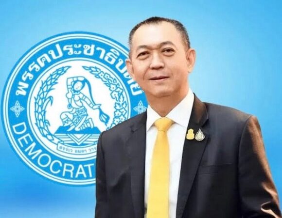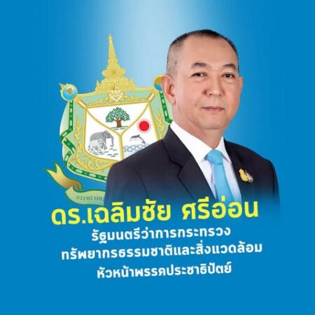 “ดร.เฉลิมชัย ศรีอ่อน หัวหน้าพรรคประชาธิปัตย์ และ รัฐมนตรีว่าการกระทรวงทรัพยากรธรรมชาติและสิ่งแวดล้อมในฐานะประธานคณะกรรมการยุทธศาสตร์ พรรคประชาธิปัตย์และนาย