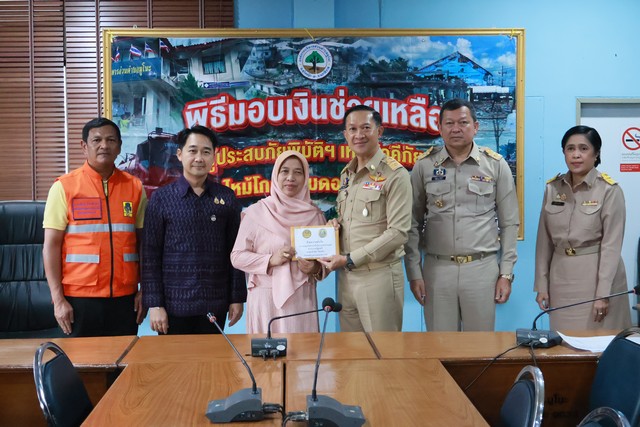 (ห้าล้านห้าแสนหนึ่งหมื่นแปดพันสองร้อยหกสิบบาทหกสิบเก้าสตางค์) ซึ่งเบิกจ่ายจากกองทุนช่วยเหลือผู้ประสบสาธารณภัยสำนักนายกรัฐมนตรี โดยมี ปลัดจังหวัดนราธิวาส ,หัวหน้าสำนักงานป้องกันและบรรเทาสาธารณภัยจังหวัดนราธิวาส ,คลังจังหวัดนราธิวาส และผู้ประสบภัยฯ เข้าร่วมพิธีฯ