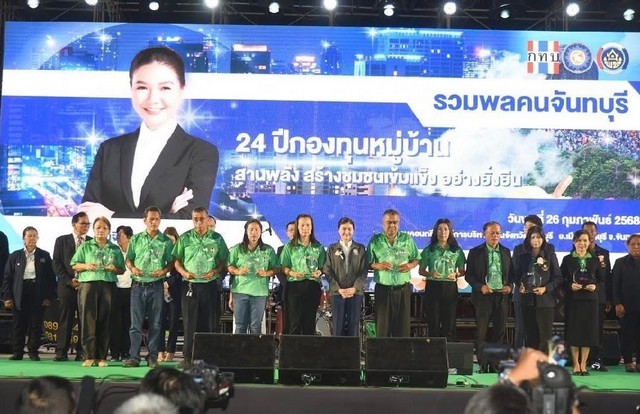 ณ ลานอเนกประสงค์ องค์การบริหารส่วนจังหวัดจันทบุรี น.ส.จิราพร สินธุไพร รัฐมนตรีประจำสำนักนายกรัฐมนตรี เปิดกิจกรรมรวมพลคนจันทบุรี ” 24 ปีกองทุนหมู่บ้าน สานพลังสร้างชุมชนเข้มแข็งอย่างยั่งยืน” พร้อมทั้งมอบโล่ รางวัลกองทุนหมู่บ้านและชุมชนเมืองดีเด่น ประจำปี 2567 จำนวน 10 รางวัล โดยมีนายมนต์สิทธิ์ ไพศาลธรนวัฒน์ ผู้ว่าราชการจังหวัดจันทบุรี นำหัวหน้าส่วนราชการ พร้อมด้วยสมาชิกกองทุนหมู่บ้าน ให้การต้อนรับ