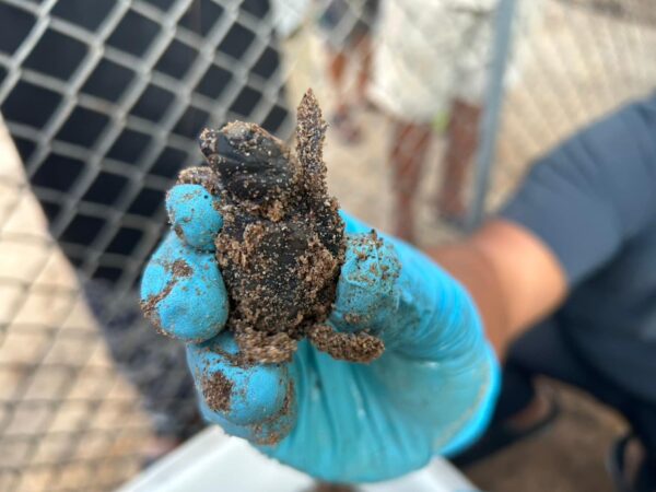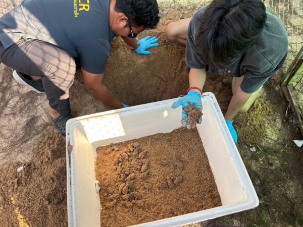 ระหว่างวันที่ 27 กุมภาพันธ์ 2568 จนท.กลุ่มสัตว์ทะเลหายากและใกล้สูญพันธุ์ สังกัดศูนย์วิจัยทรัพยากรทางทะเลและชายฝั่งอ่าวไทยตอนกลาง (ศวทก.) ได้เข้าตรวจสอบหลุมไข่เต่าทะเล ที่ครบกำหนดฟัก บริเวณหาดสะพลี อ.ปะทิว จ.ชุมพร ที่ขึ้นวางไข่เมื่อวันที่ 17 ธ.ค.67 จำนวน 197 ฟอง โดยใช้ระยะเวลาในการฟัก 72 วัน จากการตรวจสอบพบลูกเต่ากระฟักทั้งสิ้น 182 ตัว คิดเป็นอัตราการฟักร้อยละ 92.4 แต่พบลูกเต่า 1 ตัวเสียชีวิตภายในรัง เจ้าหน้าที่ได้เก็บข้อมูลทางชีววิทยา ได้แก่ ขนาดตัว จากการตรวจสุขภาพโดยรวมพบว่าลูกเต่าสมบูรณ์