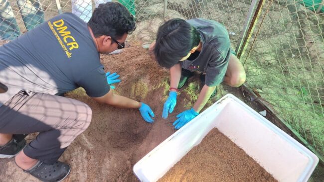 จากการตรวจสอบรอยคาดว่าเต่าทะเลตัวดังกล่าวเป็น “เต่ากระ” โดยพบไข่ทั้งหมด 197 ฟอง หลุมลึก 30-40 ซม. เนื่องจากบริเวณหลุมไข่เต่าน้ำทะเลท่วมถึง ทางเจ้าหน้าที่จึงย้ายไข่ไปยังบริเวณใกล้เคียง และได้ทำคอกเพื่อป้องกันสัตว์อื่นมาขุด และได้มีการประสานงานกับประชาชนในพื้นที่ในการแจ้งพบเจอแม่เต่าทะเลขึ้นวางไข่ในบริเวณดังกล่าว