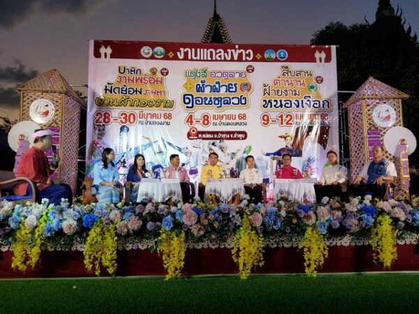 ในงาน “บาติกงามพร้อม มัดย้อมงามตา งานผ้ากองงาม” ครั้งที่ 12 วันที่ 28 ถึง 30 มีนาคม 2568 ณ บ้านกองงาม ” งานแต่งสีอวดลาย ผ้าฝ้ายดอนหลวง ” ครั้งที่ 20 วันที่ 4 ถึง 8 เมษายน 2568 ณ บ้านดอนหลวง และ“งานสืบสานตำนานฝ้ายงามหนองเงือก” ครั้งที่ 16 วันที่ 9 ถึง 12 เมษายน 2568 ณ บ้านหนองเงือก ตำบลแม่แรง อำเภอป่าซาง จังหวัดลำพูน ื