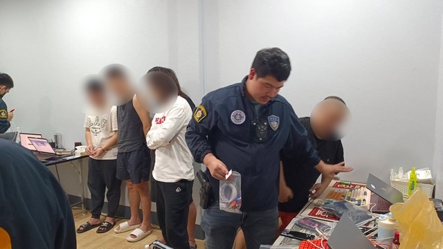 พร้อมด้วยเจ้าหน้าที่ที่เกี่ยวข้อง ได้ร่วมกันทำการจับกุม 1.Mr.Cao อายุ 32 ปี 2. Mr.Tu อายุ 29 ปี 3. Mr.Yi อายุ 30 ปี 4. Mr.Duan Guang อายุ 21 ปี 5. Mr.Li อายุ 22 ปี 6. Mr.Yang อายุ 24 ปี 7. Mr.Cheng อายุ 20 ปี 8. Mr.Jrangอายุ 32 ปี 9. Mr.Huang อายุ 26 ปี และ 1. น.ส.อรทัย สงวนนามสกุล อายุ 21 ปีชาว ต.ป่าแดด อ.แม่สรวย จ.เชียงราย พร้อมของกลาง คอมพิวเตอร์ จำนวน 14 เครื่อง โทรศัพท์มือถือ จำนวน 81 เครื่อง พร้อมอุปกรณ์เชื่อมต่ออินเทอร์เน็ต ในเบื้องต้นพบเป็นความผิดตาม พ.ร.บ.คอมพิวเตอร์ฯ กม พ.ร.บ.คนเข้าเมือง พ.ศ.2522 และ พ.ร.ก.การบริหารจัดการการทำงานของ