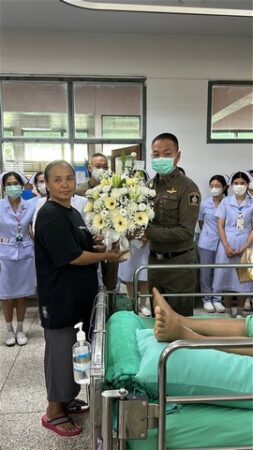 โอกาสนี้ พล.ต.ท.ยิ่งยศฯ ได้ให้กำลังใจถึงข้างเตียง มอบแจกันดอกไม้ และพูดคุยให้กำลังใจ พร้อมฝากความห่วงใยจาก ผบ.ตร.ให้แก่ ผู้ได้รับบาดเจ็บและญาติ