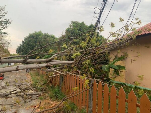 กาฬสินธุ์-เมืองน้ำดำโกลาหลพายุฤดูร้อนถล่มหลายจุดไฟฟ้าดับทั้งเมืองบ้านเรือนได้รับความเสียหายหลาย 100 หลัง