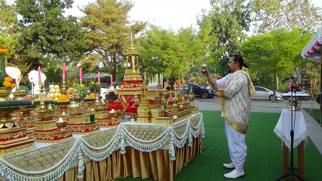 ซึ่งวันนี้เป็นพิธีบวงสรวงอัญเชิญพระบรมรูปเสด็จพ่อ ร.5 ขนาด 1.99 เมตร ขึ้นประดิษฐาน พระบรมราชานุเสาวรีย์ โดยมีพราห์มเป็นผู้บวงสรวง และพระสงฆ์ทรงสมศักดิ์สวดเจริญมงคลคาถา จนเสร็จพิธี