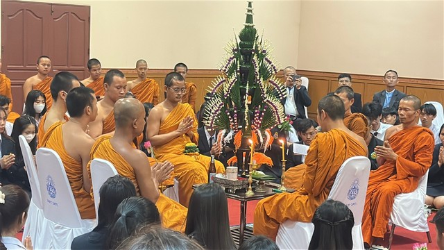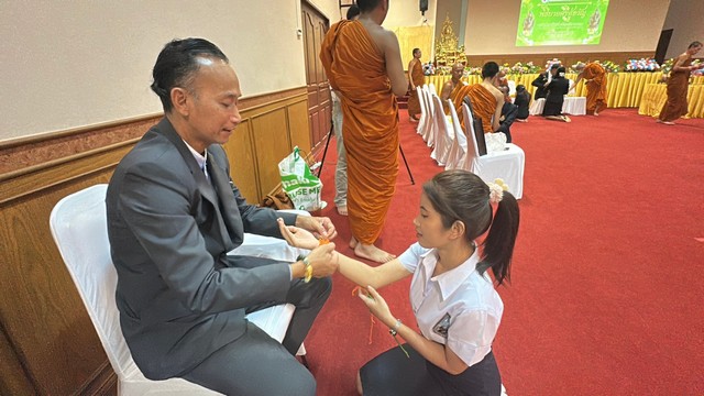 มหาวิทยาลัย มหามกุฏราชวิทยาลัย วิทยาลัยศาสนศาสตร์เฉลิมพระเกียรติกาฬสินธุ์ (มมร.กาฬสินธุ์) สืบสานประเพณีวัฒนธรรมอีสานจัดพิธีบายศรีสู่ขวัญให้กำลังใจนักศึกษาที่สำเร็จการศึกษา 2567 ในงานปัจฉิมนิเทศ