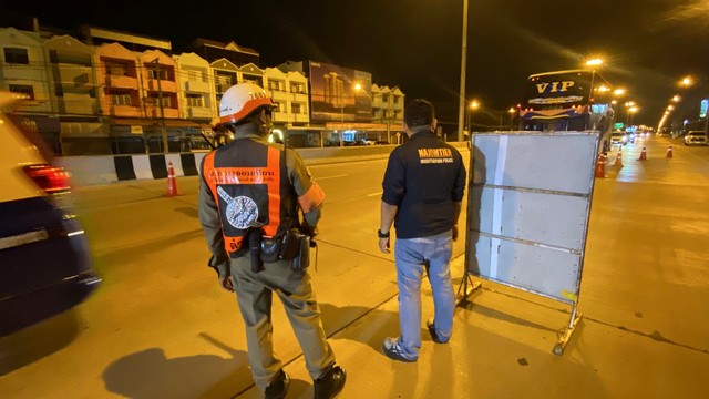 นอกจากการปล่อยแถวกำลังเจ้าหน้าที่แล้ว ทาง สภ.นาจอมเทียน ได้ตั้งด่านตรวจบนถนนสุขุมวิท หมู่ 1 ตำบลนาจอมเทียน อำเภอสัตหีบ ฝั่งขาเข้าพัทยา เพื่อคัดกรองรถต้องสงสัย ตรวจสอบรถจักรยานยนต์ที่มีท่อไอเสียเสียงดัง และ ตรวจค้นอาวุธป้องกันการนำไปก่อเหตุในพื้นที่