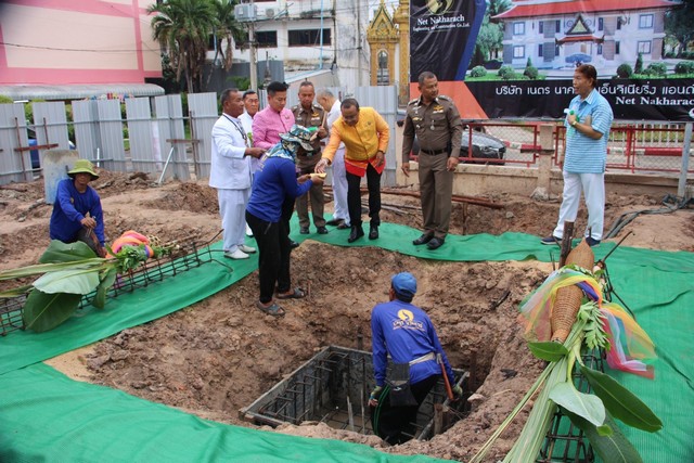 ร้อยเอ็ด…พิธีวางศิลาฤกษ์ ยกเสาเอก – เสาโท ก่อสร้างกุฏิรับรองพระเถระ วัดบูรพาราม
