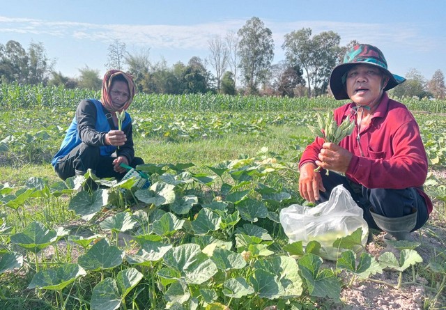 วันที่ 13 มีนาคม 2568 ผู้สื่อข่าวรายงานว่า จากการติดตามบรรยากาศการประกอบอาชีพของเกษตรกรชาว จ.กาฬสินธุ์ ในฤดูแล้ง พื้นที่ใช้น้ำชลประทานของโครงการส่งน้ำและบำรุงรักษาลำปาว (เขื่อนลำปาว) หลายอำเภอ ที่นอกจากจะมีการเลี้ยงกุ้งก้ามกรามและทำนาปรังเป็นส่วนใหญ่แล้ว ยังพบว่าในพื้นที่ ต.ลำคลอง ต.ลำปาว และต.บึงวิชัย อ.เมืองกาฬสินธุ์ เกษตรกรได้รวมกลุ่มปลูกพืชผักสวนครัวผสมผสาน “แปลงใหญ่” สร้างร้ายได้ตลอดปี โดยมีการปลูกพืชฤดูแล้ง อายุสั้น ใช้น้ำน้อย อายุ 3-4 เดือนเก็บผลผลิต เช่น พืชกระกูลแตง ฟักทอง บวบ ข้าวโพด ถั่วลิสง พริก มะเขือ ถั่วฝักยาว สามารถเก็บขายได้ทั้งส่วนของยอด ใบ ดอก ผล รายได้อย่างน้อยวันละ 300 บาท ตกเดือนละ 15,000 บาททีเดียว