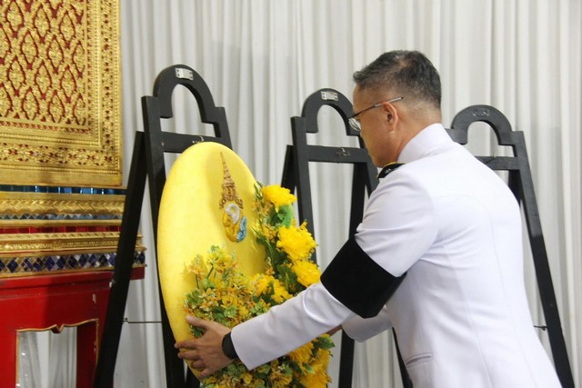 วันนี้(12 มี.ค.68) เวลา 19.30 น. พระบาทสมเด็จพระเจ้าอยู่หัว ทรงพระกรุณาโปรดเกล้าโปรดกระหม่อมให้นายธีรุตม์ ศุภวิบูลย์ผล ผู้ว่าราชการจังหวัดสุราษฎร์ธานี เชิญพวงมาลาพระราชทานของพระบาทสมเด็จพระเจ้าอยู่หัว และพวงมาลาของพระบรมวงศานุวงศ์ (จำนวน 12 พวง) ไปวางที่หน้าหีบศพ ร.ท. ภูวิวัฒน์ คำสง ณ วัดอภัยเขตตาราม อำเภอบ้านนาสาร จังหวัดสุราษฎร์ธานี ซึ่งเสียชีวิตขณะปฏิบัติหน้าที่ในจังหวัดชายแดนภาคใต้