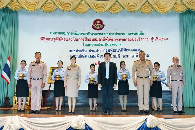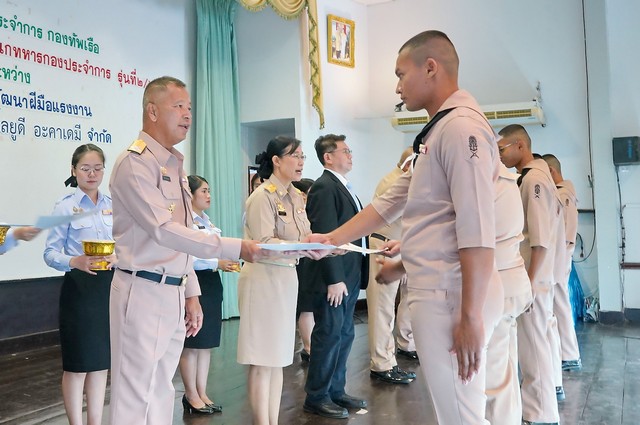 วันที่ 14 มี.ค.68 พลเรือเอก วิจิตร ตันประภา ประธานคณะกรรมการพัฒนาอาชีพทหารกองประจำการกองทัพเรือ (คพท.) เป็นประธานในพิธีปิดหลักสูตรการฝึกอาชีพ ให้แก่ทหารกองประจำการ รุ่นที่ 2 ประจำปีงบประมาณ 2568 โดยมีผู้แทนหน่วยงานที่เกี่ยวข้อง ร่วมมอบวุฒิบัตรและแสดงความยินดีกับผู้ที่สำเร็จหลักสูตร ณ สโมสรสัญญาบัตร ฐานทัพเรือสัตหีบ อ.สัตหีบ จ.ชลบุรี