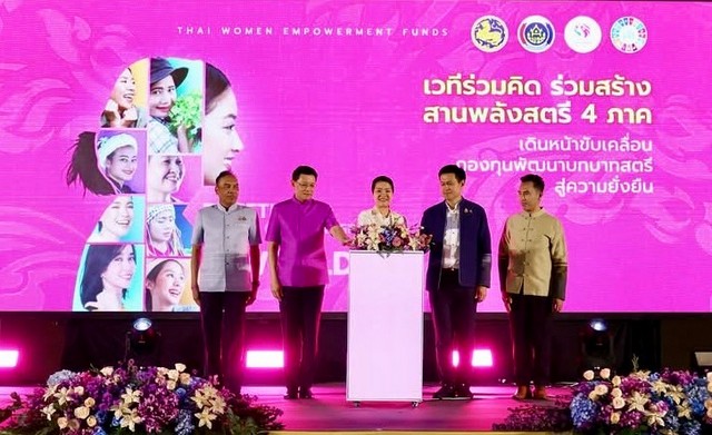 สำหรับโครงการ เวทีร่วมคิด ร่วมสร้าง สานพลังสตรี 4 ภาค เดินหน้าขับเคลื่อนกองทุนพัฒนาบทบาทสตรีสู่ความยั่งยืน ได้ดำเนินงานเสร็จสิ้นตามเป้าหมายแล้ว รวมจำนวน 4 รุ่น ได้แก่ รุ่นที่ 1 ภาคตะวันออกเฉียงเหนือ จ.อุดรธานี วันที่ 13 กุมภาพันธ์ 2568 รุ่นที่ 2 ภาคใต้ วันที่ 17 กุมภาพันธ์ 2568 ณ โรงแรมทวินโลตัส อ.เมือง จ.นครศรีธรรมราช รุ่นที่ 3 ภาคกลาง วันที่ 7 มีนาคม 2568 ณ มหาวิทยาลัยราชภัฏนครปฐม และรุ่นที่ 4 ภาคเหนือ วันที่ 15 มีนาคม 2568 ณ ศูนย์ประชุมและจัดแสดงสินค้านานาชาติเชียงใหม่