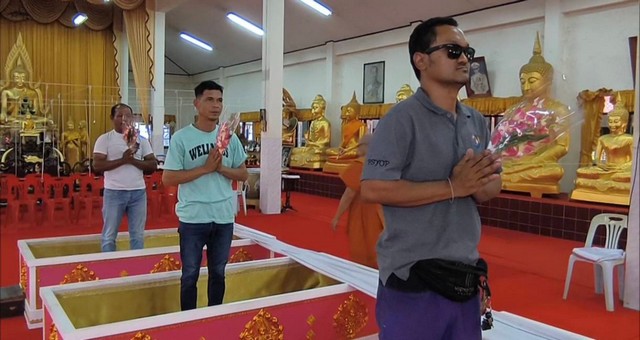นครนายก – นักท่องเที่ยวให้ความศรัทธาเดินทางเข้าพิธีนอนโลงศพวัดหลวงพ่อปากแดงจังหวัดนครนายก