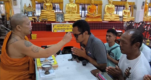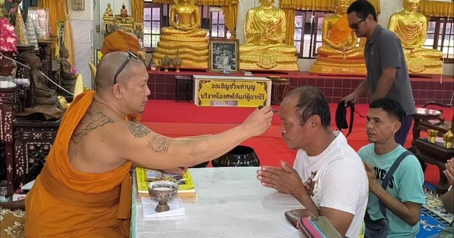 นักท่องเที่ยวให้ความศรัทธาเดินทางมาวัดหลวงพ่อปากแดงเข้าพิธีนอนโลงศพสะเดาะเคราะห์ต่อดวงชะตาชีวิต ฝึกตายก่อนตายจริงฝึกสติให้คิดได้ว่าทุกคนหนีไม่พ้นความตาย พร้อมเจิมหน้าผาก เจิมฝ่ามือ ลงยันต์กระเป๋าสตางค์ ลงยันต์โทรศัพท์